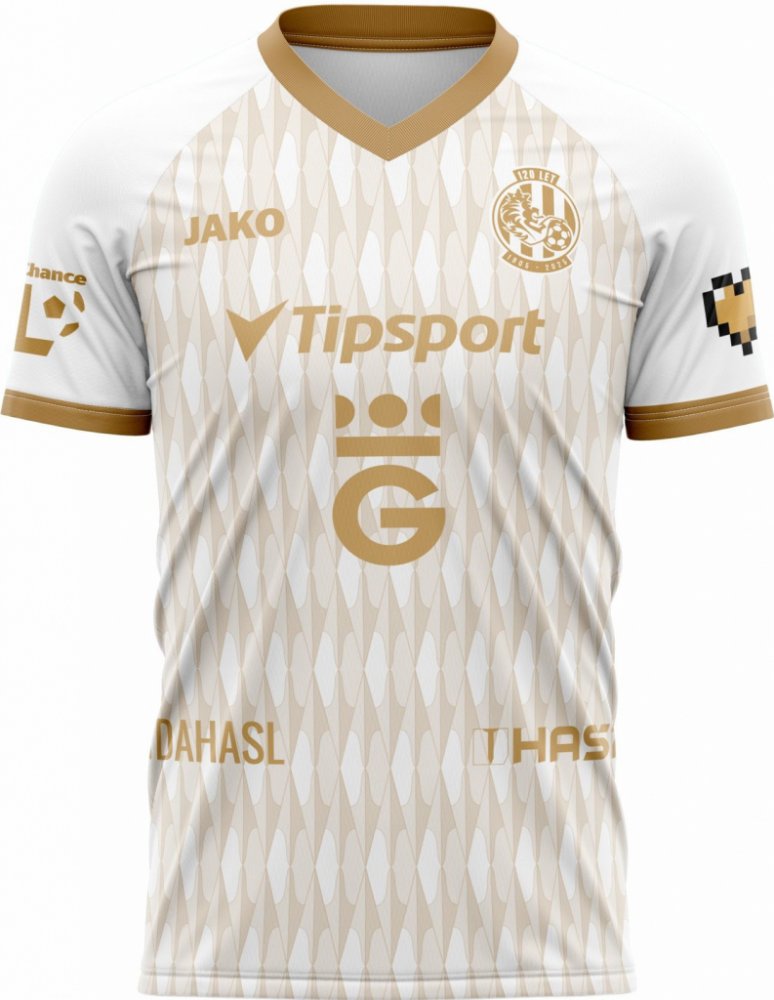 Vstupte do nové sezóny s grácií a silou! Nový venkovní dres FC Hradec Králové pro ročník 2025/2026 je mistrovským dílem designu, který propojuje bohatou historii klubu s moderním fotbalovým stylem. Dominantní bílá barva je doplněna sofistikovanými zlatými detaily, včetně límce do "V", loga "120 let" na hrudi a jemného celoplošného vzoru,.