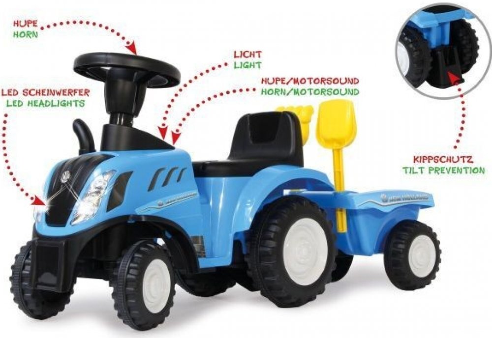 Kdo by neznal přední světovou značku zemědělských strojů pro traktory? Tento traktor New Holland s přívěsem, lopatou a hráběmi má vše, co rozbuší dětská srdce. Díky skutečným světlometům, klaksonu a zvuku motoru se nikdy neomrzí a protiskluzový systém zajistí, že vaše dítě bude na cestách vždy v bezpečí.Nejdůležitější informaceOficiálně licencovanéVěrný originální vzhledOchrana proti převráceníLED...