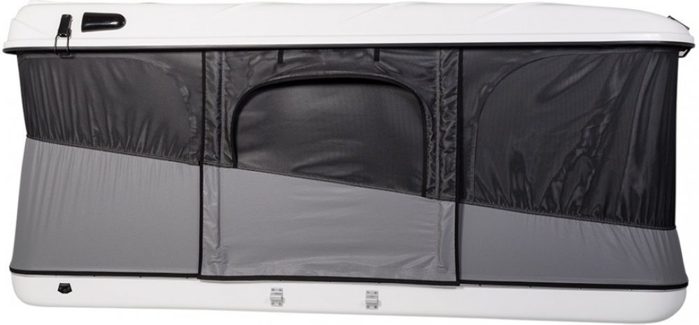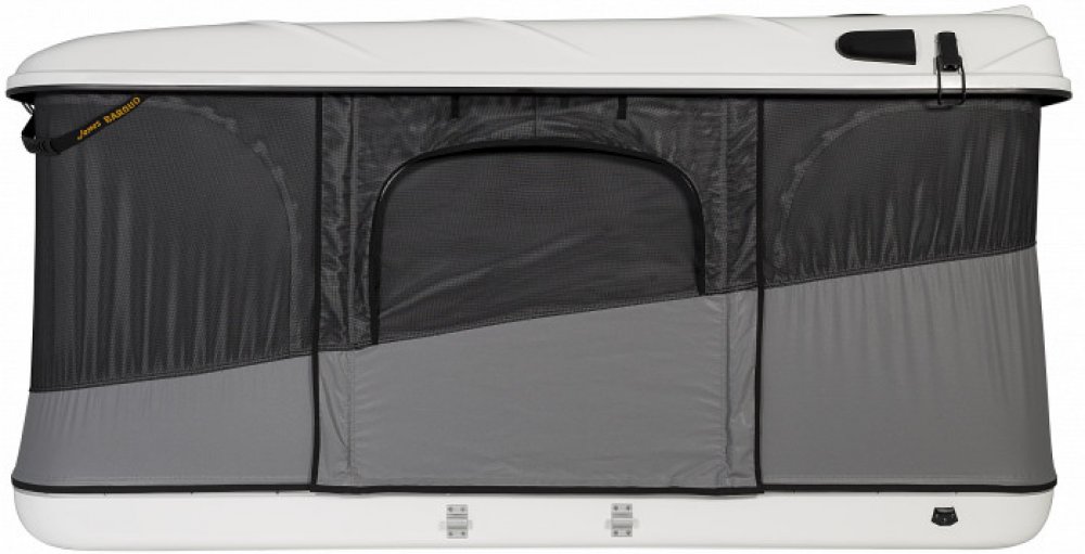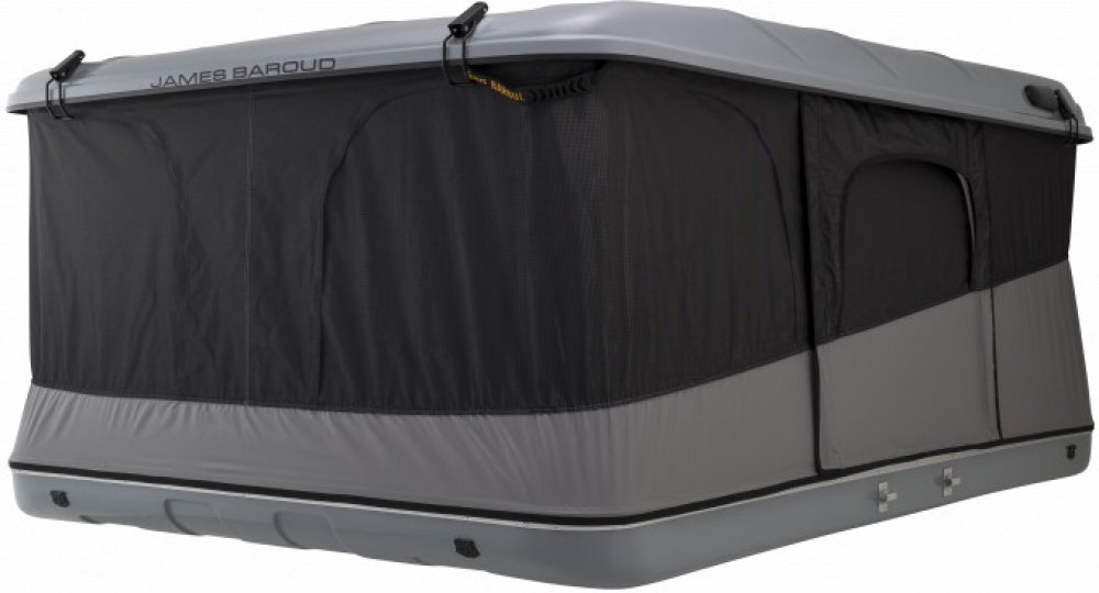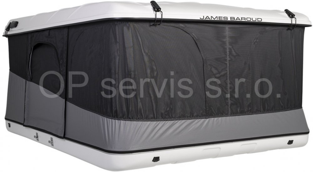 Střešní stan James Baroud Evasion XL, bílý má tvrdou skořepinu vyrobenou z vystuženého polyesterového laminátu. Má vzduchové otvory, které umožňují ventilaci uvnitř stanu. Zavírání je jištěno pomocí západek. Pro upevnění k vozidlu slouží dva integrované hliníkové C profily uchycené v šesti upevňovacích bodech. Stan je vyroben z plátna s vodním sloupcem výše než 850 mm. Je odolné vůči UV záření, vo...