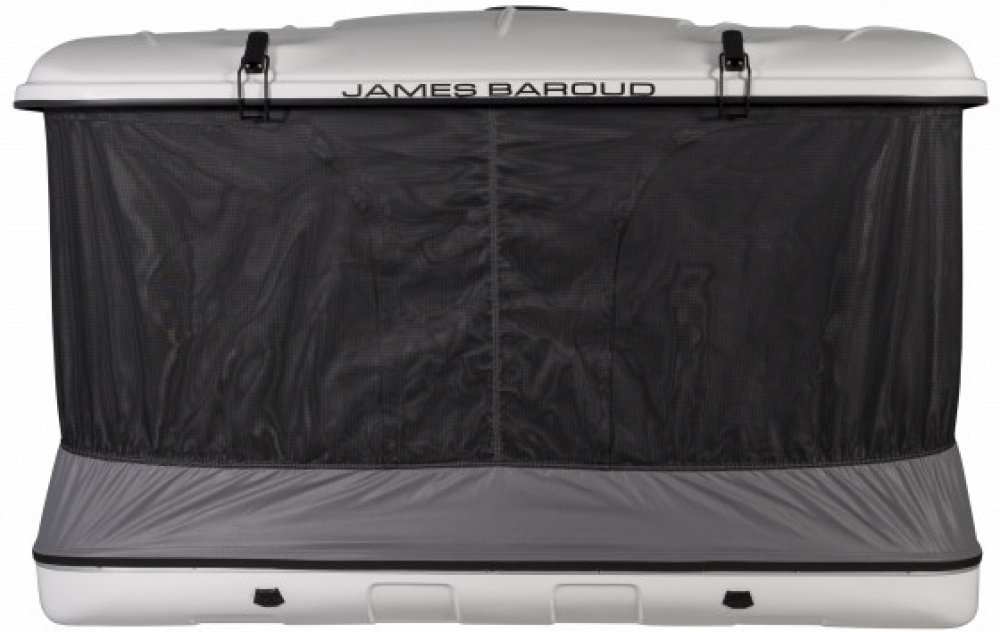 DesignGrand Raid X je prvotřídní model v nabídce James Baroud, nabízí spací prostor až pro tři dospělé osoby. Grand Raid má troje dveře se dvěma okny, což vytváří vynikající křížové větrání a umožňuje cirkulaci vzduchu v celém stanu. Otvory jsou plně testovány na hmyz, mají zavření na suchý zip ve spodní části a malé markýzy pro ochranu před deštěm, které dovolí nechat okna pootevřená, zatímco prší. Ventilátor nastavený do extraktoru, vyfukující vzduch ven, je skvělý způsob, jak pomoci zabránit kondenzaci, která se může vyskytnout ve stanu za chladných venkovních podmínek.Grand Raid je špičkový střešní stan. Prostorný, pohodlný a postavený tak, aby zvládl nejextrémnější podmínky.... rozhodně lepší způsob, jak cestovat na dlouhé vzdálenosti na silnicích, nebo na 4x4 dobrodružném cestování.Stan je dodáván s vnitřním světlem s 15 vysoko intenzivními LED, které funguje jako vyměnitelná dobíjecí baterka. Všechny vodiče k dobíjení jsou dodávány se stanem. Svítilna má pevnou polykarbonátovou čočku a indikátor nabití baterie.Pokud jste vlastnil střešní stan nebo znáte někoho, kdo ho má, víte jak horký autostan uvnitř může být. Můžete také vědět, jak stan, který zůstane stále na střeše může být cítit plísní. Standard stanů James Baroud přichází s automatickým a tichým MCV (motorizovaným řízeným větráním), který je poháněn baterií s kapacitou pro 24 hodin provozu, kterou lze dobíjet pomocí integrované soupravy solárních panelů. MCV má kapacitu 11,6 m3 / Min (2905 UK gal / min), a tím dokáže zabránit kondenzaci a odstraní akumulované teplo, aby se zabránilo vlhkosti a plísni.Vnitřní rozměry- vnitřní délka je 198 cm- vnitřní šířka 160 cm- vnitřní výška 98cm Vnější rozměry uzavřeného stanu - délka 200 cm- šířka 162 cm- výška 30 cmHmotnost stanu je cca 59 kg. Tři vchodyVšechny skořepinové střešní stany James Baroud jsou plně vybavené a mají tři velkorysé dvouvrstvé vchody s moskytiérou. Zip lze otevřít z obou stran, to umožňuje flexibilní otevření vchodů. Vchody lze po otevření srolovat nahoru a pevně přichytit suchým zipem. Pro příjemné větrání lze dveře otevřít tolik, kolik chcete, zcela nebo jen trochu. Všechny dveře jsou v dolní části opatřeny suchým zipem a lze je tedy zcela uzavřít po celém obvodu. Tím se zabrání dešti nebo hmyzu v proniknutí do stanu. Zároveň je zavírání stanu mnohem jednodušší, protože žádná látka nevisí ven. MateriályBrilantní konstrukce střešních stanů spojuje látku a pevné díly do jednoho celku za pomoci kolejnice kolem celého obvodu stanu, a ne jako u konkurenčních výrobců levně nýty. Látka stanu lze snadno vyměnit, je-li například poškozená vandalismem. Hliníkový profil s kolejnicemi je připojen ke spodní straně střešního stanu tak, že se stanová tkanina nachází na vnější straně. Toto řešení zabrání dešťové vodě zatéci do stanu i v extrémních podmínkáchVšechny James Baroud střešní stany jsou vyrobeny z celoroční "Touring (TM)" tkaniny od holandské firmy TenCate, která se specializuje na špičkové stanoviny dobře známé po celém světě. Velmi kvalitní stanová tkanina z polyesteru je relativně lehká, ale pevná a trvanlivá. Mikro porézní akrylový povlak je voděodolný, prodyšný a odolný vůči povětrnostním vlivům a odpuzuje nečistoty. Díky tomu se snadno čistí. James Baroud používá nejvyšší úroveň kvality TenCate o hmotnosti 240 g/m2 s vodním sloupcem více než 850 mm. Použitá barva tkaniny odráží sluneční světlo a snižuje přehřátí uvnitř stanu. Elastický pás integrovaný do stanové tkaniny kolem stanu umožňuje snadné sbalení. Díky tomu není většinou nutné zasouvat tkaninu při skládání stanu ručně po obvodu stanu dovnitř. To je velkou výhodou pro stan namontovaný na velmi vysoká vozidla.- Tkanina autostanu Grand raid Evolution je neprůhledná a uvnitř stanu se jeví mírně tmavší.- Odolný proti povětrnostním vlivůmJames Baroud stany jsou stavěny pro těžké povětrnostní podmínky. Všechny zipy jsou opatřeny na vnější straně nepromokavých těsněním. Všechny švy jsou zdvojeny. Použité šicí nitě při prvním kontaktu s vodou utěsní vpichy natrvalo. Stany jsou navrženy tak, že ani dokonce při prudkém dešťi voda nepronikne a stan vydrží rychlost větru až 120 km/h. Obvodová gumička nejen zjednodušuje uzavření stanu, ale drží stěny stanu napnuté při otevření a zabraňuje tak nepříjemnému a hlasitému mávání tkaniny ve větru. Existuje mnoho detailů kde se dá ukázat, proč je James Baroud lepší volbou.James Baroud stany jsou konstruovány také do teplého podnebí. Dva větrací otvory umístěné v horní části pláště, které jsou...
