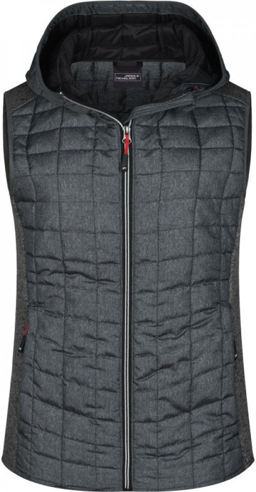 Vypasovaný střih, kapuce s nastavením šířky, celopropínací podšitý zip, 2 boční kapsy se zipem, 2 vnitřní kapsy, přední část, zadní část a kapuce v prošívaném károvaném designu, melanžový vzhled, pratelné na 30°, šetrné praní, nelze žehlit, nelze sušit v sušičce
