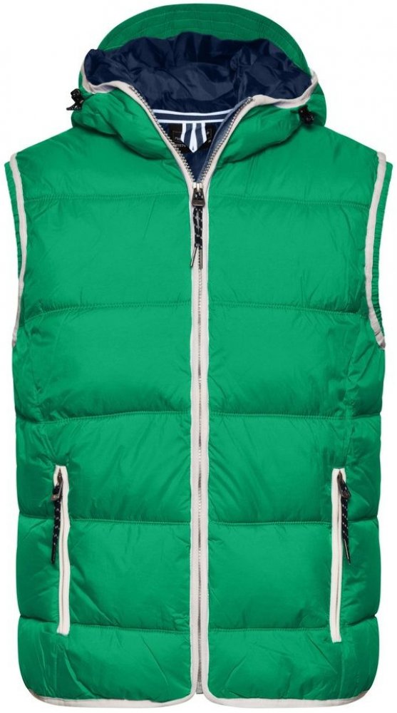 Pohodlná pánská vesta s kapucí, větru a vodě odolná (600 mm vodního sloupce), 2 přední kapsy, 1 vnitřní náprsní kapsa, kontrastní lemování, 6 barev, velikost S-XXXL. Vnější materilál: 100% Polyamid. Podšívka: 100% Polyester. Výplň: 100% Polyester. Tuto vestu zakoupíte také v dámském provedení.