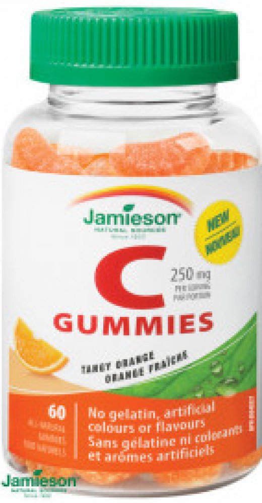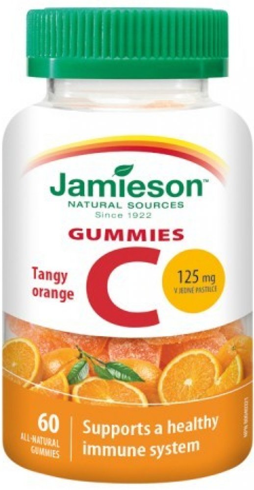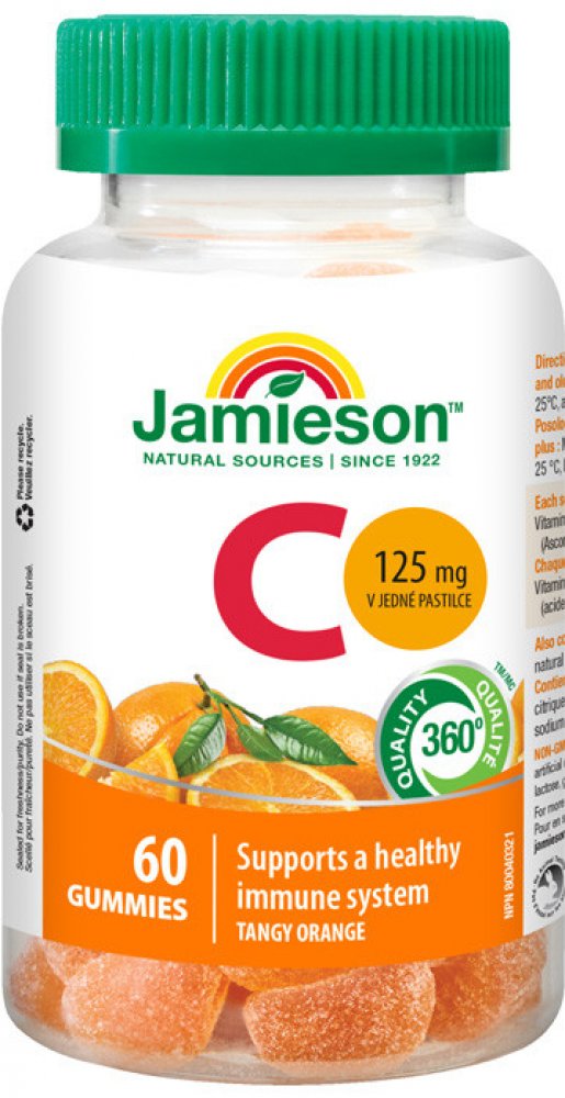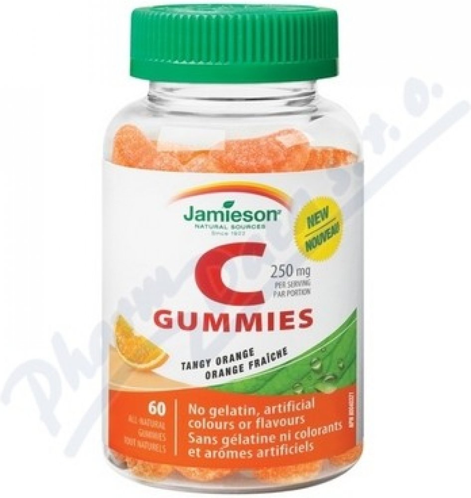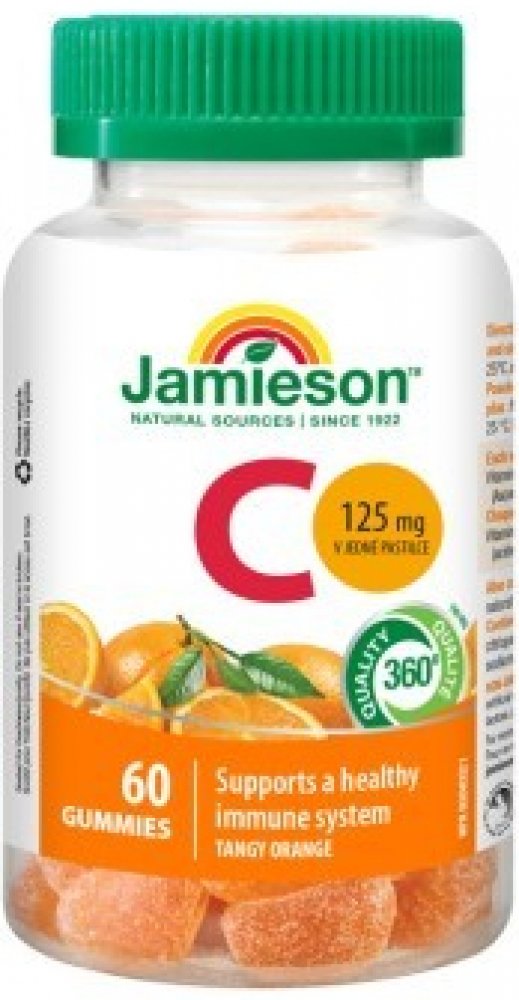 JAMIESON Vitamín C Gummies je vitamín C ve formě pastilek se svěží pomerančovou příchutí, připravených s použitím ovocného pektinu (bez želatiny), a proto jsou vhodné i pro vegetariány. Vhodné k užívání v období fyzické námahy, stresu a v období rekonvalescence.