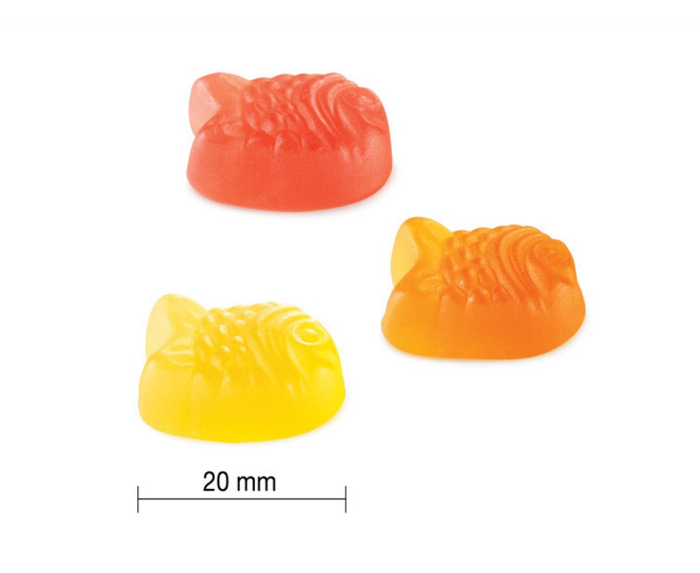 Glukózový sirup, sacharóza (sladidla); pektin (želírující látka); přírodní příchutě (citron, pomeranč, směs bobulového ovoce, banán, třešeň); kyselina citrónová, citrát sodný (ochucovadla); přírodní barviva (koncentrovaná šťáva z černé mrkve, annatto); karnaubský vosk, rostlinný olej (povlakové látky).