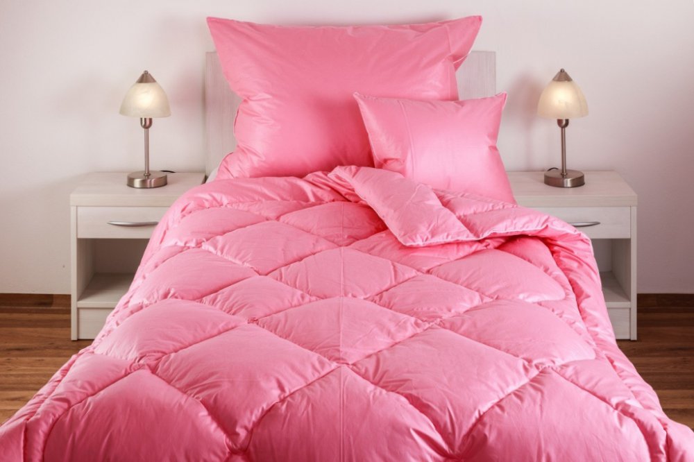 Přikrývka (deka) prošívaná péřová - husí drané peří 5/95 - růžová