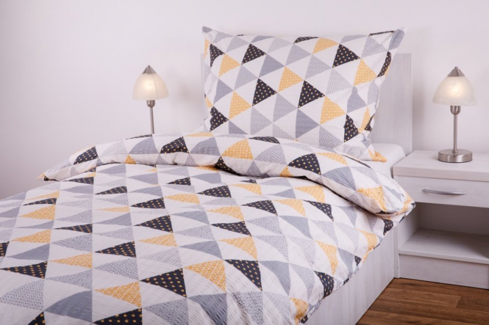 Krepové povlečení - trojúhelníky šedožluté Polštář 70x50