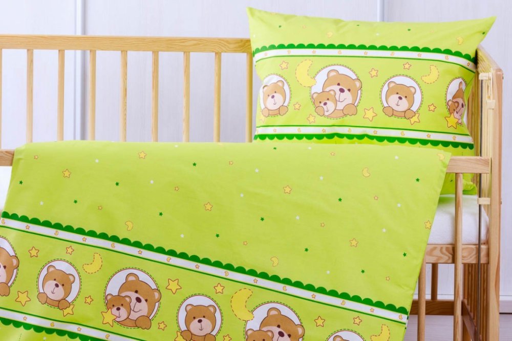 Povlečení do dětské postýlky - méďa v kroužku zelené 135x100/60x40 cm
