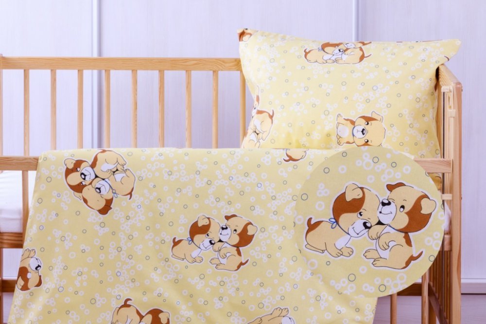 Povlečení do postýlky - žlutý pejsek 135x100/60x40 cm bavlna