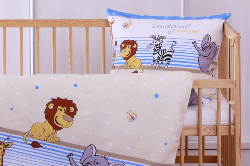 Dětské povlečení do postýlky - safari modré 135x100/60x40 cm