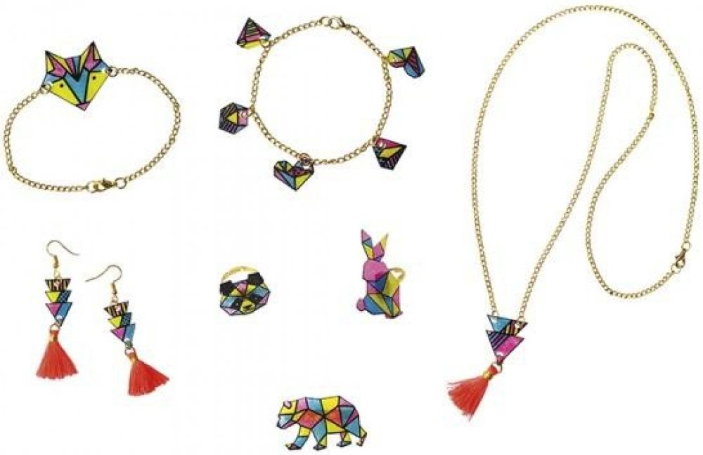 Kompletní sada pro vytvoření 7 kusů šperků: 2 náramky, 1 náhrdelník, 1 náušnice 3 prsteny. Postupujte podle návodu k vytvoření šperků krok za krokem. Krabička obsahuje: 12 plastových dílů, 2 listy s potiskem, 1 x 1metrový řetízek, zapínání, háčky na náušnice, různé přívěsky, kleště 1 brožuru s návodem. Tato aktivita je vhodná ke stimulaci manuální dovednosti, kreativity a zábavy při vytváření vlas...