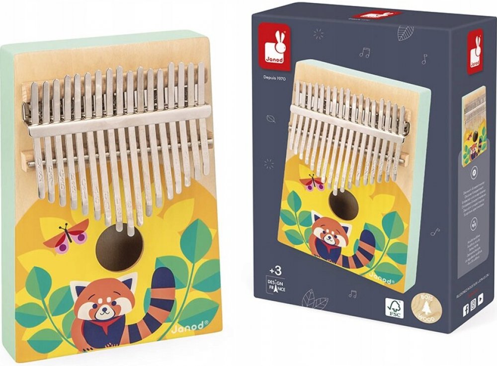 Dřevěná kalimba ze série Gioia od francouzské značky Janod je vynikající první hračka pro dítě, která podporuje rozvoj sluchu, smyslu pro rytmus a hudebních schopností. Nástroj má 17 plechů na rezonančním boxu s grafikou pandy červené, což z něj dělá vizuálně atraktivní a snadno ovladatelný pro malé ručičky. Hra na kalimbu rozvíjí koncentraci, vytrvalost, koordinaci pohybů a představivost a příjemný zvuk uklidňuje a zapojuje dítě. Kalimba je jednoduchá na obsluhu, odolná a ideální jako dárek.