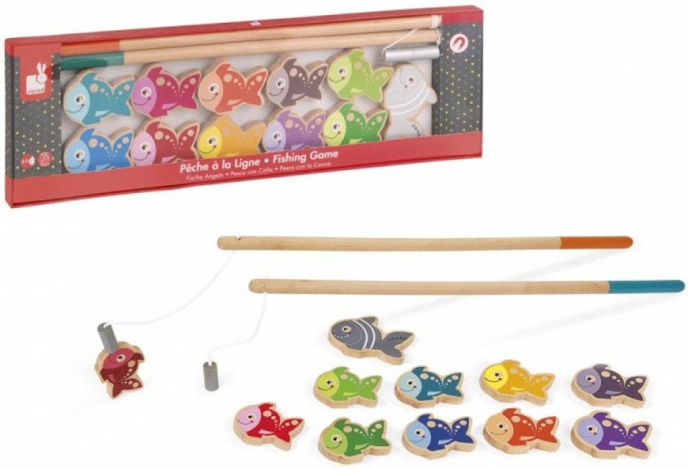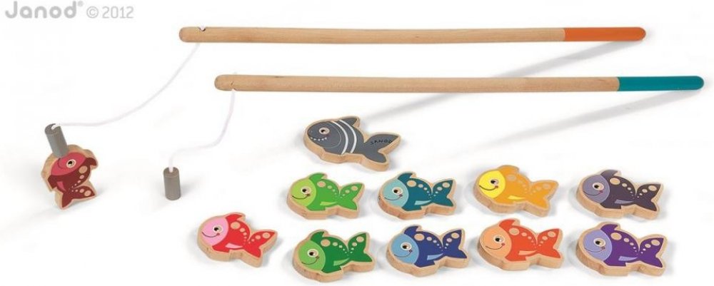 Kdo první chytí rybičku na udici? Kdo chytí žraloka? Chytání rybiček nikdy nebylo takovou zábavou jako teď! Hra je vyrobena z masivního dřeva a její součástí je 11 různě zbarvených dřevěných rybiček, které mají na zadní straně číslice a dvě magnetické udice.