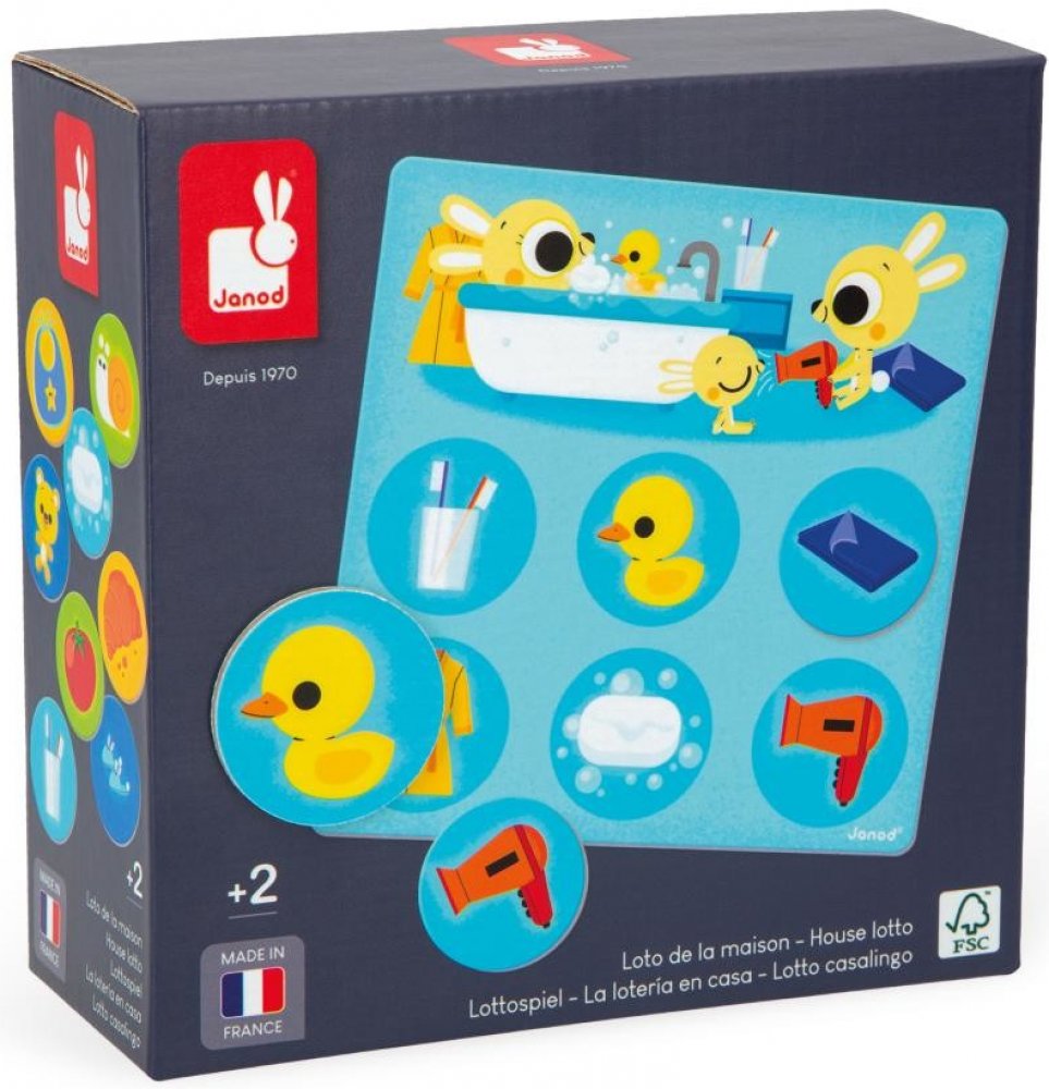 Tato hra bingo s domácí tematikou pomůže rozvíjet schopnost vašeho dítěte přiřazovat obrázky. Vydejte se na zábavné učební dobrodružství pro nejmenší s touto sadou binga, která obsahuje 4 desky a 24 žetonů, které dětem pomohou identifikovat 6 konkrétních předmětů v každé části domu (dětská láhev, pyžamo, fén, konev atd.). Tato hra bingo jistě rozvíjí dětskou slovní zásobu a soustředění. Děti od 2 let budou objevovat předměty a místnosti v domě (kuchyň, ložnice, koupelna a zahrada). Každá herní deska představuje jednu místnost v domě s poutavou scénou, která obsahuje všechny důležité prvky. Děti si při hraní binga mohou zahrát vyhledávací hru. Rozvíjejí tak své jazykové a pozorovací schopnosti. Děti se budou učit, rozvíjet a především se bavit! Velké žetony jsou navrženy speciálně pro malé ruce, takže se děti mohou zapojit a bavit se až se 4 hráči. Toto bingo je součástí naší řady vzdělávacích her, které jsou navrženy tak, aby pomáhaly dětem rozvíjet se prostřednictvím hry již od útlého věku. Tato stolní hra je vyrobena ve Francii z rostlinných barev a kartonu FSC™.