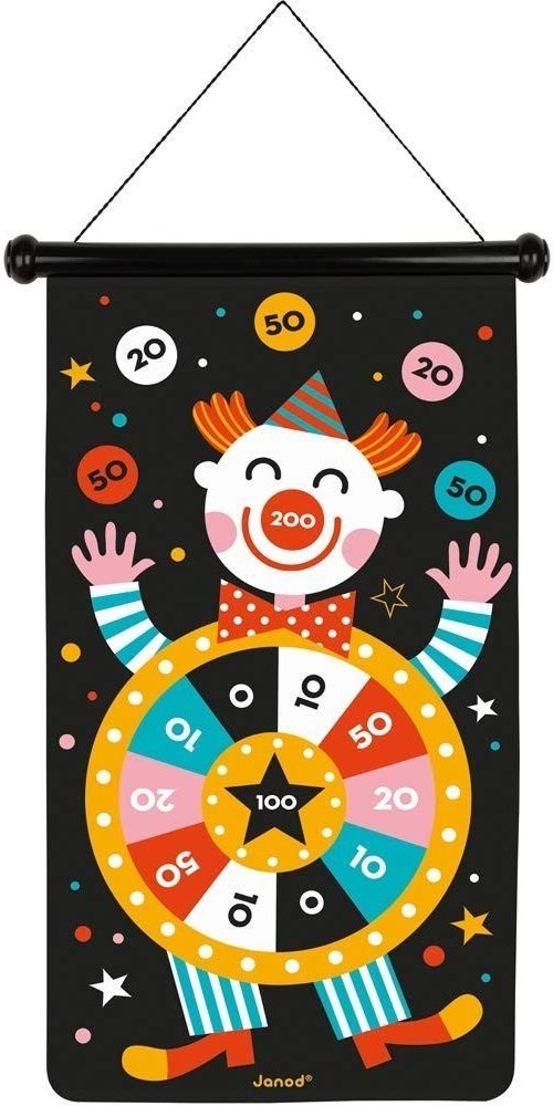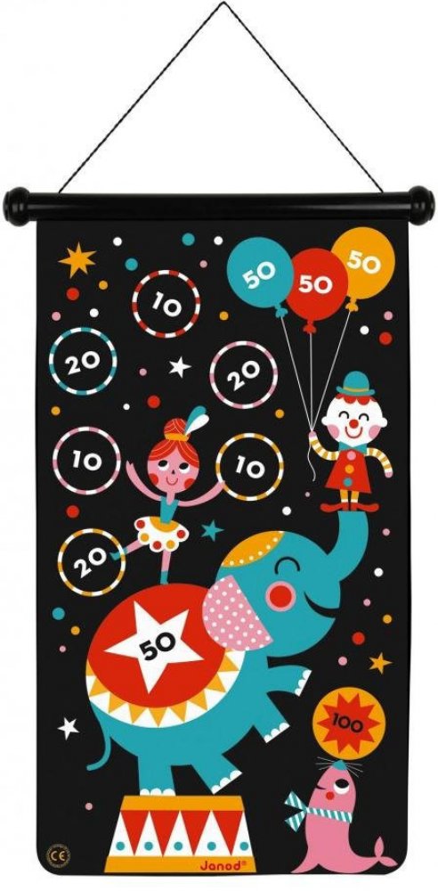 Magnetický terč Cirkus Klasická zábava s bezpečnými šipkami pro děti i dospělé Magnetický terč Cirkus je ideální hračkou pro všechny, kdo milují házení šipkami, ale nechtějí se obávat zranění. Tento závěsný terč je vybaven silnými magnetickými šipkami, které nemají hroty, čímž poskytují bezpečnou zábavu pro děti i dospělé. Terč je oboustranný - můžete si vybrat mezi házením do středu na nejvyšší počet bodů nebo otočit terč a házet na různé bodové oblasti po celém povrchu. Hra stimuluje rozvoj koncentrace, koordinace ruka-oko a přesnosti při hodu. Terč je skvělý pro domácí zábavu, díky své flexibilitě a možnosti srolování jej můžete vzít s sebou kamkoli.