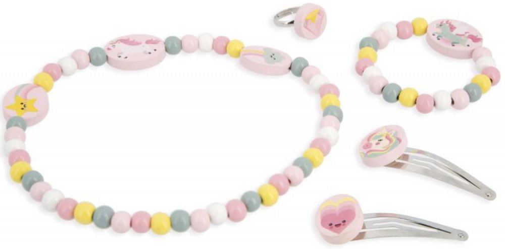 Dodejte svému outfitu kouzlo s touto roztomilou dřevěnou sadou šperků s motivem jednorožce.