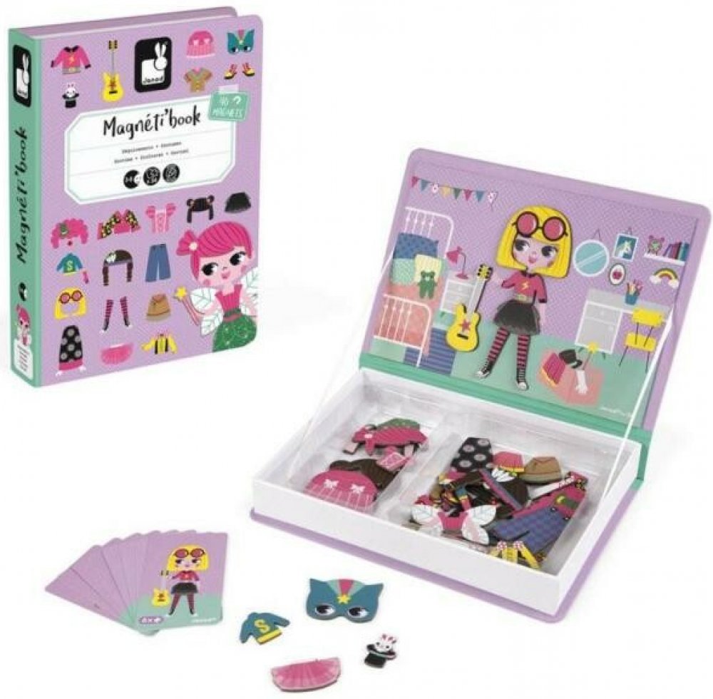 Kniha Magneti'Book Dívčí Oblečení je fantastická magnetická hračka od výrobce Janod. Je to krásná hračka Magnetická skládačka ve tvaru knihy má maximálně zajímavý design, kterým nepohrdne ani jedna malá slečna. Kniha Magneti'Book Dívčí Oblečení je fantastická magnetická hračka od výrobce Janod. Je to krásná hračka Magnetická skládačka ve tvaru knihy má maximálně zajímavý design, kterým nepohrdne ani jedna malá slečna. Zabavte vaše děti skládáním obrázků z magnetických dílků podle předlohy. Dítě vybírá různé oblečení pro dívku v knize, nejprve podle předlohy a poté podle vlastní fantazie. Magnetická dětská hračka obsahuje 8 kartiček s předlohami a 46 magnetických dílků, skvělá pro malé módní návrháře. Praktické balení zajistí, že se hračka dá pohodlně přenášet, děti se s ní zabaví nejen doma, ale i na dlouhých cestách. Magnetická kniha pro děti je krásná nadčasová hračka pro každé dítě, která se bude líbit několika generacím, vyrobená z kvalitních materiálů a zdravotně nezávadných barev.Příslušenství: 46 magnetů + 8 karet Materiál: Karton Rozměry: cca 19 x 4 x 26 cmVhodná pro děti od 3 do 8 let.