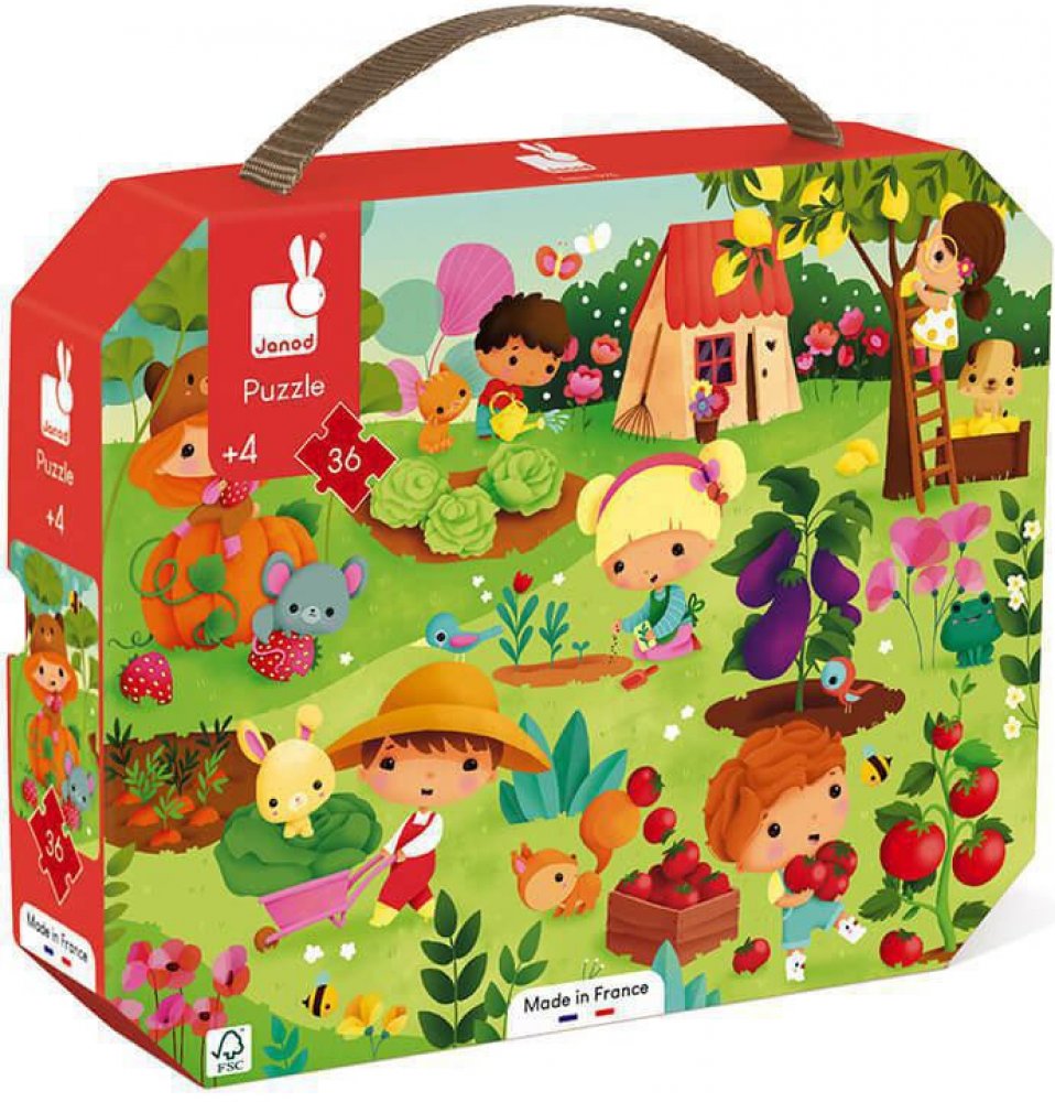 Nádherně ilustrované puzzle s motivem zahrady z dílny společnosti Janod okouzlí a zabaví jistě ne jedno dítko.