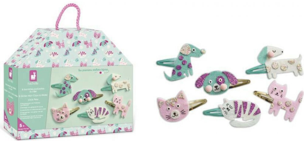 Květinová zahrada! Z této kreaitivní sady můžete vyrobit 6 třpytivých spon do vlasů s motivem obyvatel zahrady: pěkného motýla, berušky, zajíčka, ptáčka, houbu a myšky. Květinová zahrada! Z této kreaitivní sady můžete vyrobit 6 třpytivých spon do vlasů s motivem obyvatel zahrady: pěkného motýla, berušky, zajíčka, ptáčka, houbu a myšky. Roztomilá potištěná krabička se může pochlubit ultra přenosným tvarem kufříku a obsahuje 6 spon do vlasů (každá 5 cm), 3 listy předřezaného samolepicího filcu, 2 listy předem nařezaného samolepicího třpytivého materiálu, 2 pompony, dvojité oboustranné nálepky, 4 chenilkové nitě a 1 brožurku s návodem a vzory. Tato aktivita pomáhá rozvíjet zručnost a trpělivost a dokončení každé sponky do vlasů trvá přibližně 10 minut. Je ideální pro děti od 5 let.