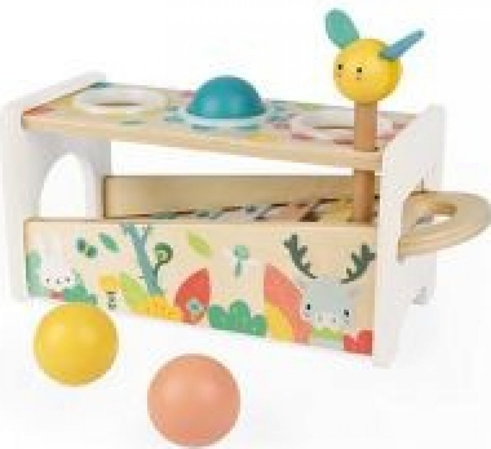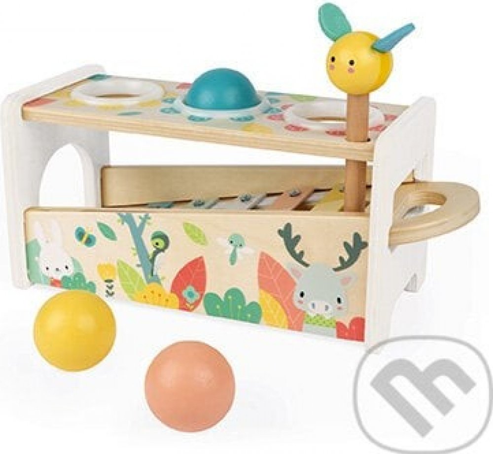 Krásná dřevěná hračka spojuje zatloukačku a xylofon v jednom. Hračka zaujme děti velmi jemnými moderními barvami s ilustrací roztomilých zvířátek. Hračka je ideální na rozvoj jemné motoriky a smyslů. Pomůže dětem rozvíjet obratnost a děti si zároveň užijí spoustu zábavy. Vždyť dělat hluk je pro malé děti tak zábavné. Kladívkem se včeličkou děti zatloukají 3 dřevěné barevné kuličky. Ty při pádu vyd...
