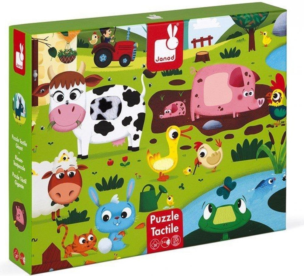 Dětské hmatové puzzle Zvířátka na farmě Janod s texturou jsou dodávány v praktickém balení a proto jsou vhodné i jako krásný dárek.