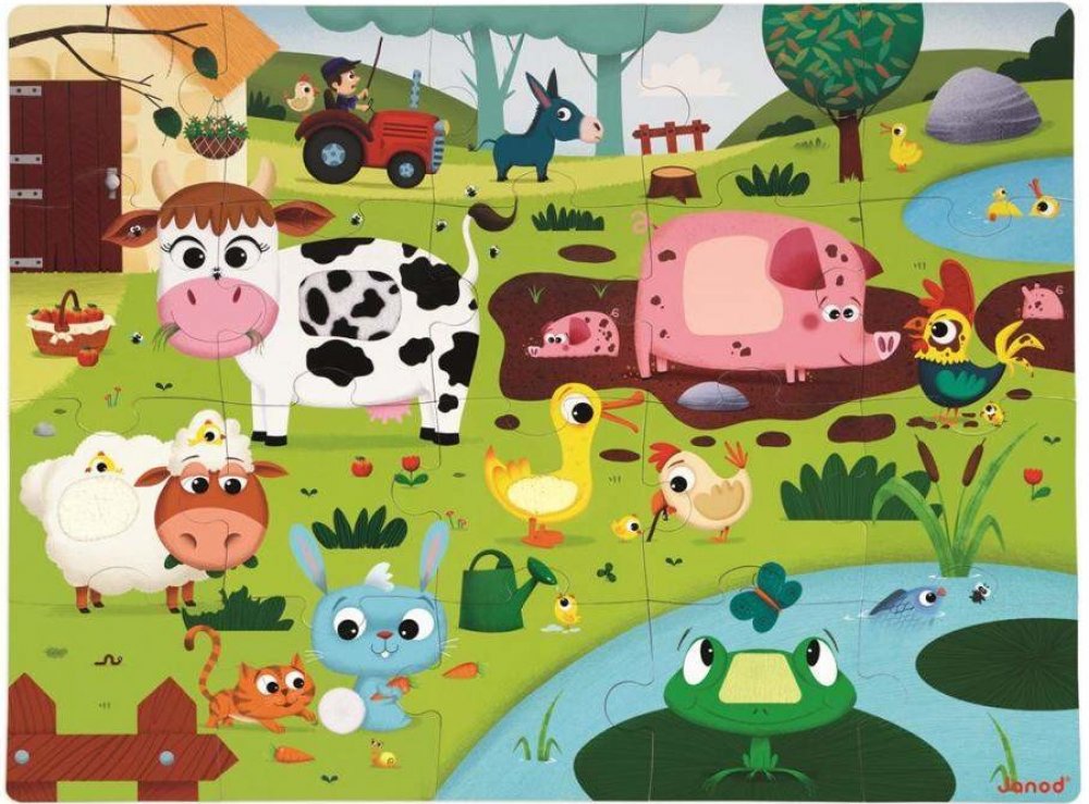 Představte svým dětem svět zvířátek z farmy. S hmatovými puzzle Janod se naučí zvířátka poznávat nejen vizuálně, ale i dotykem.