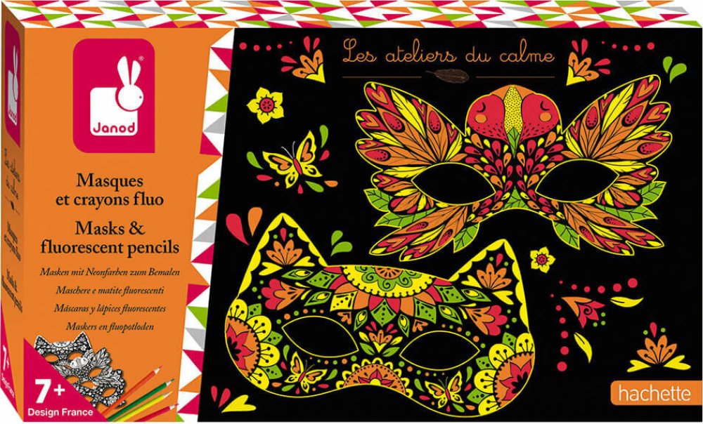 Kreativní zbarvení umožňuje produkovat 5 masek pomocí techniky omalovánky se 4 fosforescenčními pastelkami a dokončením upevněním připojeného gumového pásma. Hotové masky budou zářit ve tmě. Karneval může začít! MIDI nastavil Janod Atelier pro vytváření a podporu dovedností a představivosti u dětí. Kreativní hračky pro děti nezabírají mnoho prostoru, jsou vhodné pro silnice a doma, ve zdraví a nem...