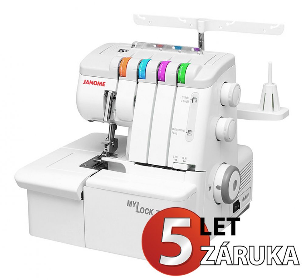 Janome 744 D je špičkový overlock se zesílenou konstrukcí. Je to 2, 3, 4nitný šicí stroj, s jednoduchým ovládáním. Můžete na něm šít tyto stehy:
