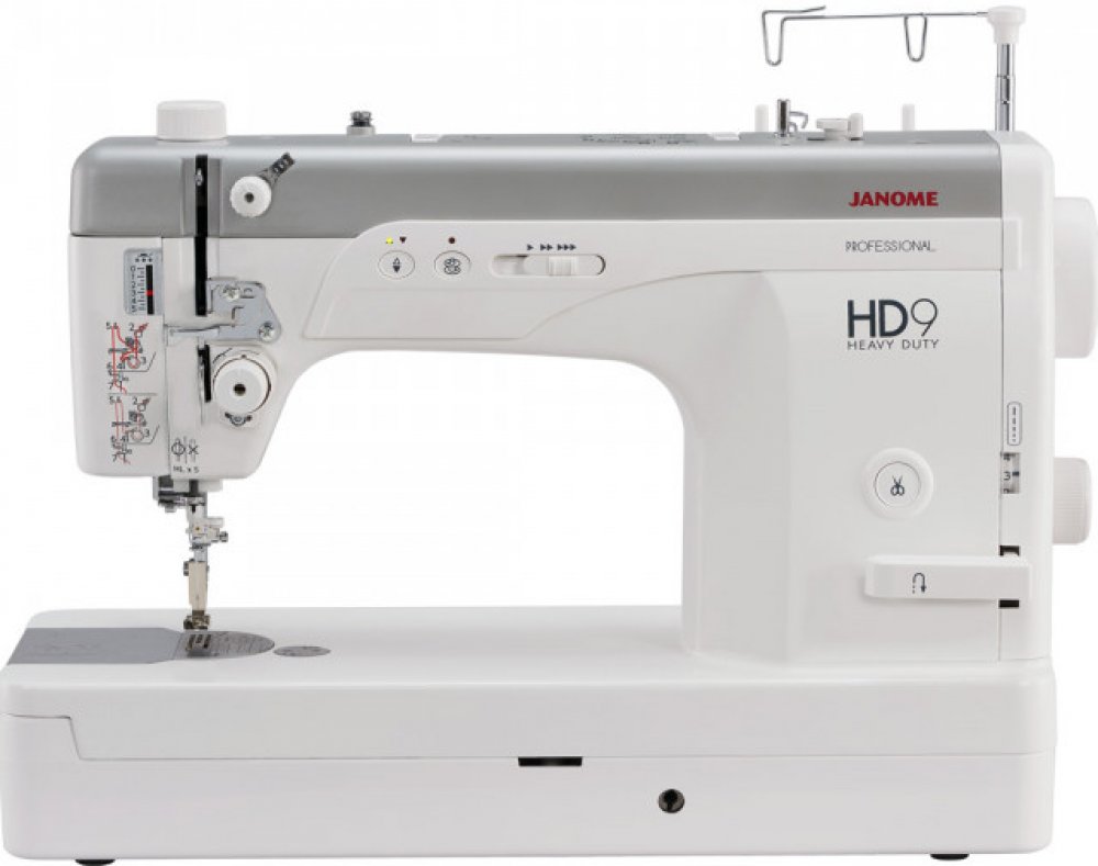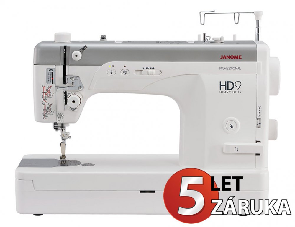 Šicí stroj pro profesionály Janome Heavy Duty 9 Professional. Máte malou dílnu, opravnu oděvů, modelovou dílnu? Toužíte po průmyslovém šicím stroji, který má automatický odstřih nitě, ale vy si jej nemůžete z důvodu místa pořídit? V tom případě si pořiďte Janome HD9, tento stroj má parametry průmyslového jednojehlového stroje s automatickým odstřihem nitě, průmyslové patky, stehovou desku, průmyslový rotační chapač, vynikající rychlost šití, kolenní páku atd. Největší jeho výhodou je, že jej můžete jednoduše postavit na stůl a po šití znovu uklidit.