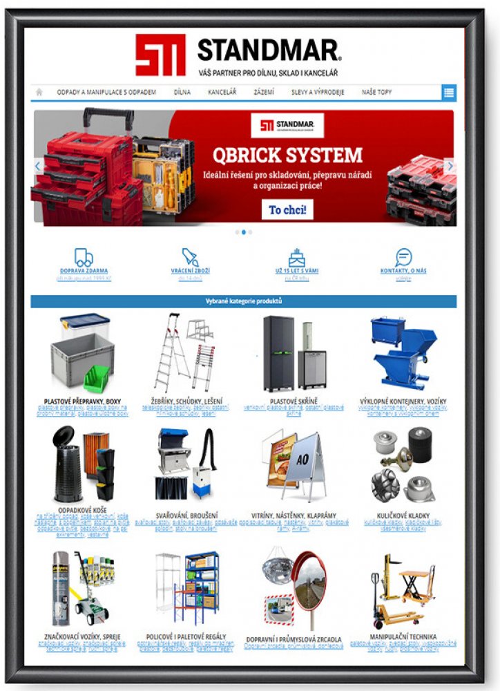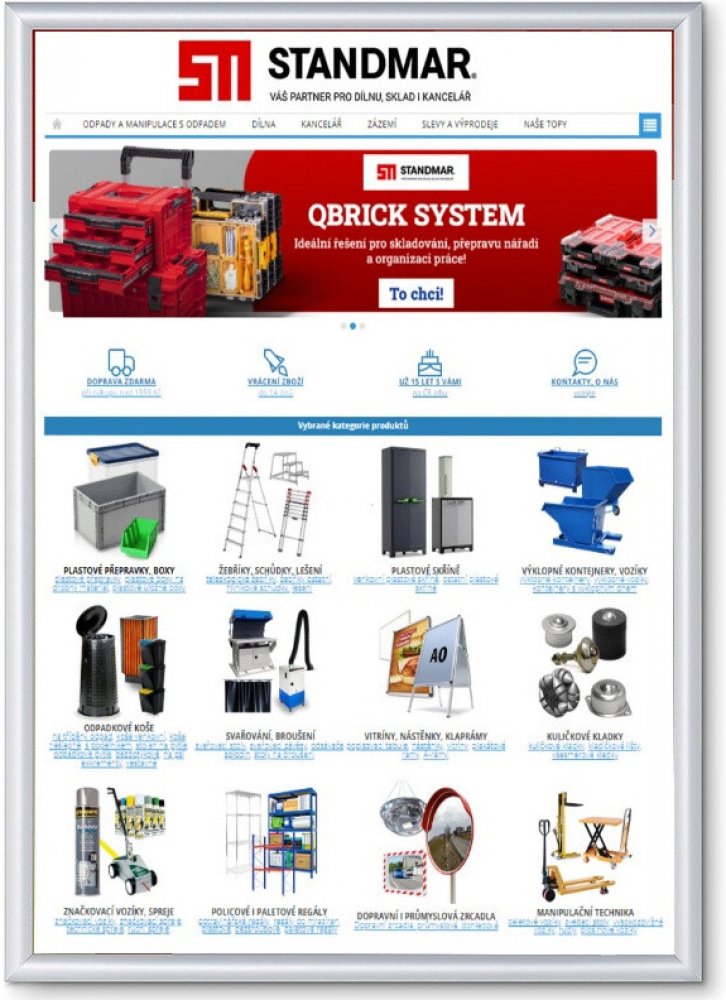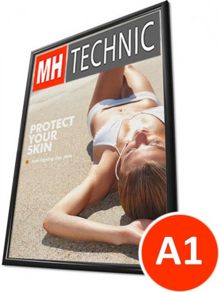 Klaprám formátu A1 s černým profilem a šířkou 25 mm je ideálním řešením pro prezentaci vašich plakátů a informačních materiálů ve vnitřních prostorech (použití venku je možné za určitých podmínek - viz sekce často kladené dotazy). Rohy jsou ostré, zadní stěna plastová a dodává se včetně antireflexní fólie s UV filtrem, která chrání plakát před UV zářením a poškrábáním.