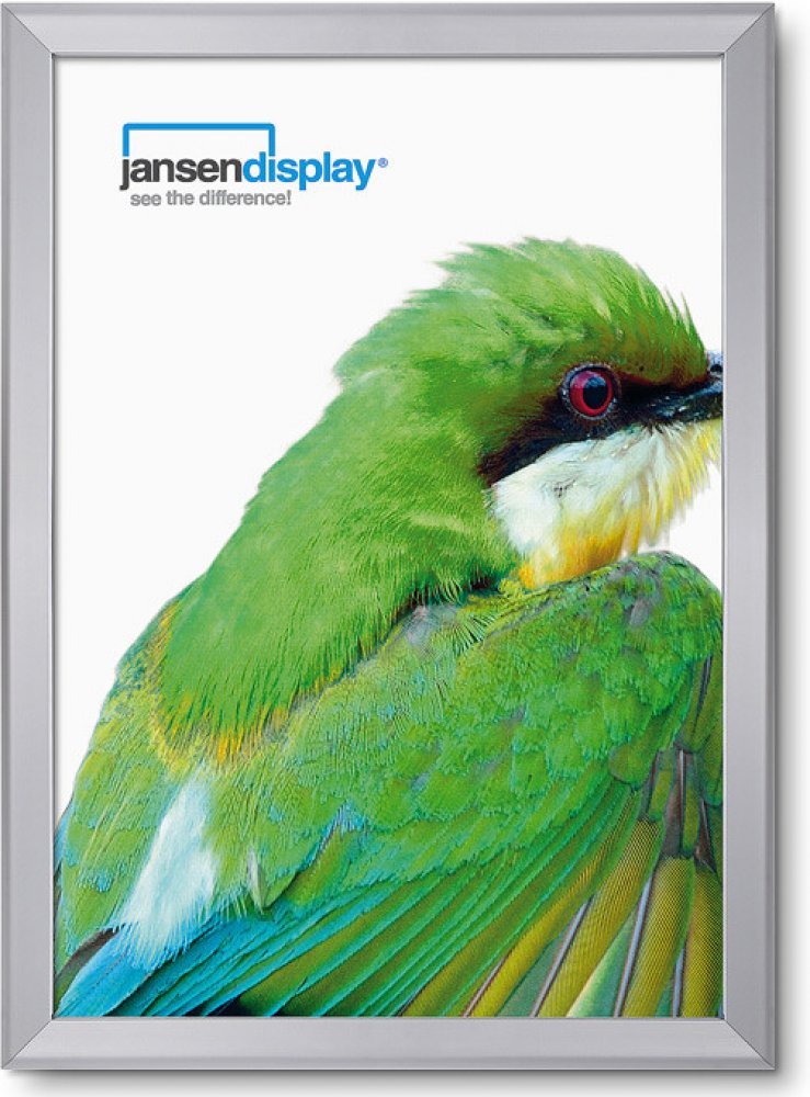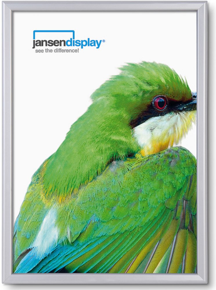 Jednoduše odklopte přední profily směrem k sobě, vyměňte plakát, a profily opět zaklapněte.