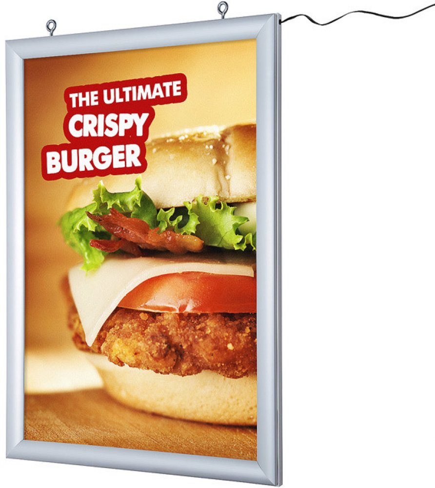 Světelný LED klaprám A2. Podsvícení je zajištěno jasnou a homogenní technologií. Klip rám je připravený k okamžitému zavěšení a má UV ochrannou antireflexní folii. Plakáty se v cliprámu vyměňují velmi snadno. Technické údaje Balící jednotka délka (mm) 772 Balící jednotka šířka (mm) 532 Balící jednotka výška (mm) 85 Čistá hmotnost (kg) 4,4 Celková hmotnost (kg) 5,3 Elektrická energie Ano Osvětlení ...