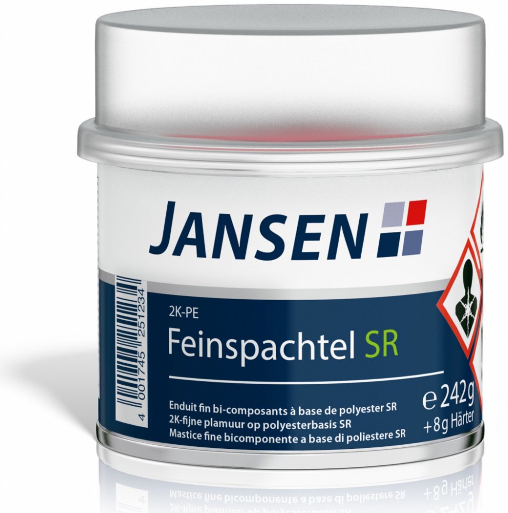 Dvousložkový jemný tmel na karosářské a lakýrnické práce automobilů, dřevo, kov a tvrdé plasty, od německého výrobce Jansen. Tmel nepraská a neloupe se, má vysokou odolnost. Vytváří jemnou vrstvu. Vynikající vydatnost, vyplňovací schopnost, brousitelnost a rychlá doba schnutí. Lze následně přetírat různými druhy nátěrů nebo plničem. Tmel je vhodný pro použití ve venkovním i vnitřním prostředí.