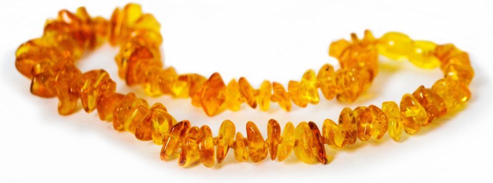 nenechávejte dítě korálky žvýkat – jantar je velmi měkký a snadno dojde k jeho rozkousnutí. V zažívacím traktu se jantarový zlomek bez zbytku rozloží. Je zde ovšem riziko vniknutí rozkousnutého korálku do dýchacího ústrojí, proto je vhodné toto opatření bezpodmínečně dodržovat.