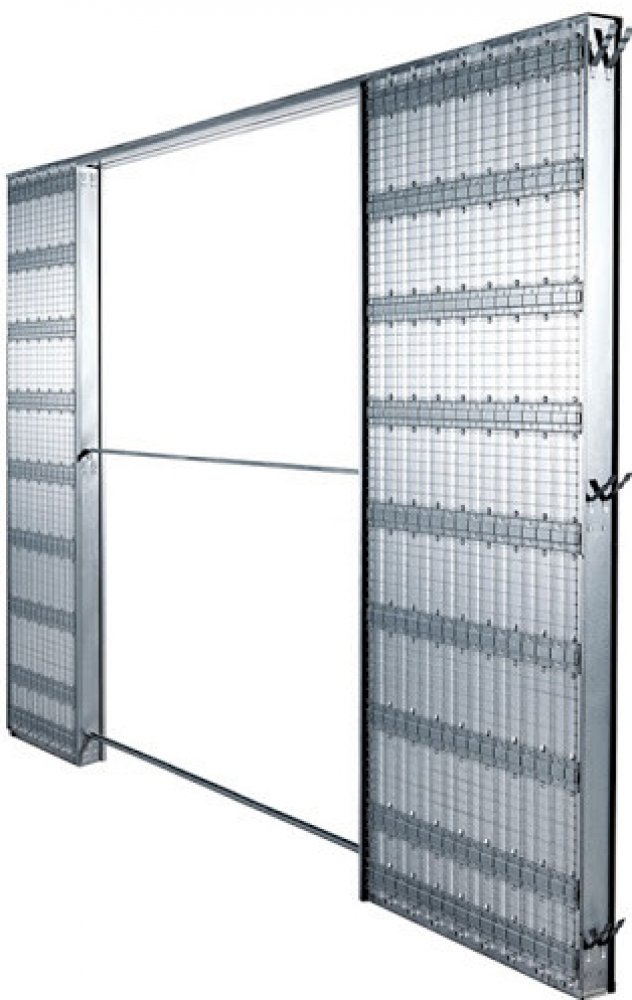 - svařované stavební pouzdro pro dvě jednokřídlé zasouvací dveře s možností namontování obložkové zárubně, kdy zárubeň je v jedné rovině s obrysem stěny