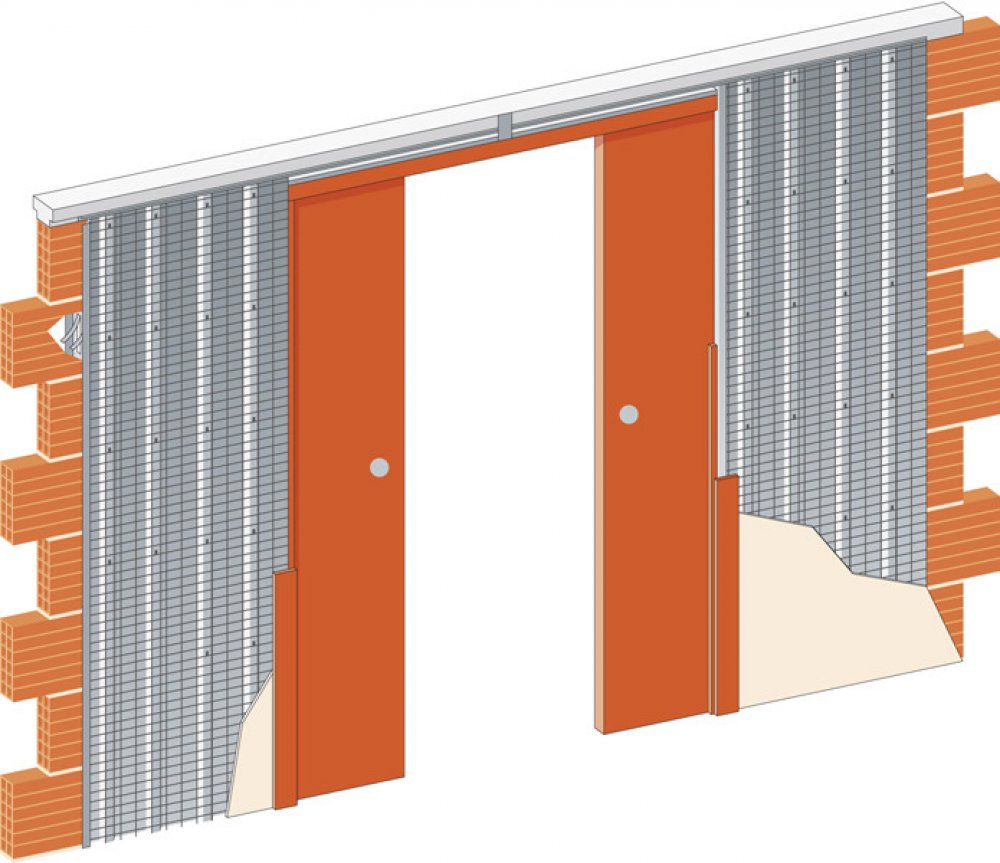 - Každé pouzdro je určeno pro jedno křídlo dveří, které se vysouvají proti sobě.