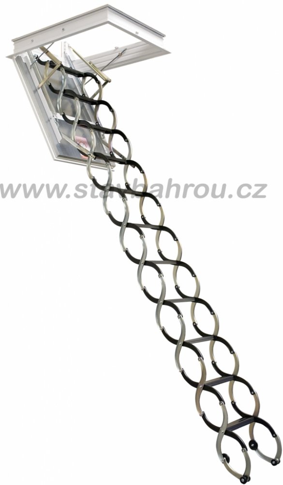Schody s plechovým sendvičovým víkem pro zabudování do stropu. Uvnitř víka je tepelná izolace. otevírací systém víka je od rozměru d ≥ 1 000 mm opatřen brzdícím mechanismem proti prudkému otevření. Sendvičové víko: dřevěný rám vyplněný izolačními materiály je opláštěn pozinkovaným plechem. Podhledová část je lakována v bílé barvě a kryta ochrannou fólií. Lze také dodat pouze zateplený uzávěr bez s...