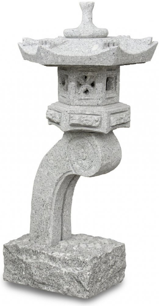 lucernu Rankei umisťujeme nejčastěji na břeh jezírka, kde se ve vodní hladině zrcadlí její krásaRankei [rankej] - základna leží na okraji vody a část se světlem, bohatě zdobená ornamenty, je pomocí dlouhé, obloukové nohy vysunutá nad voduexcentrické umístění horních částí lampy, případně jejich noční osvětlení, je v zahradě velmi efektní