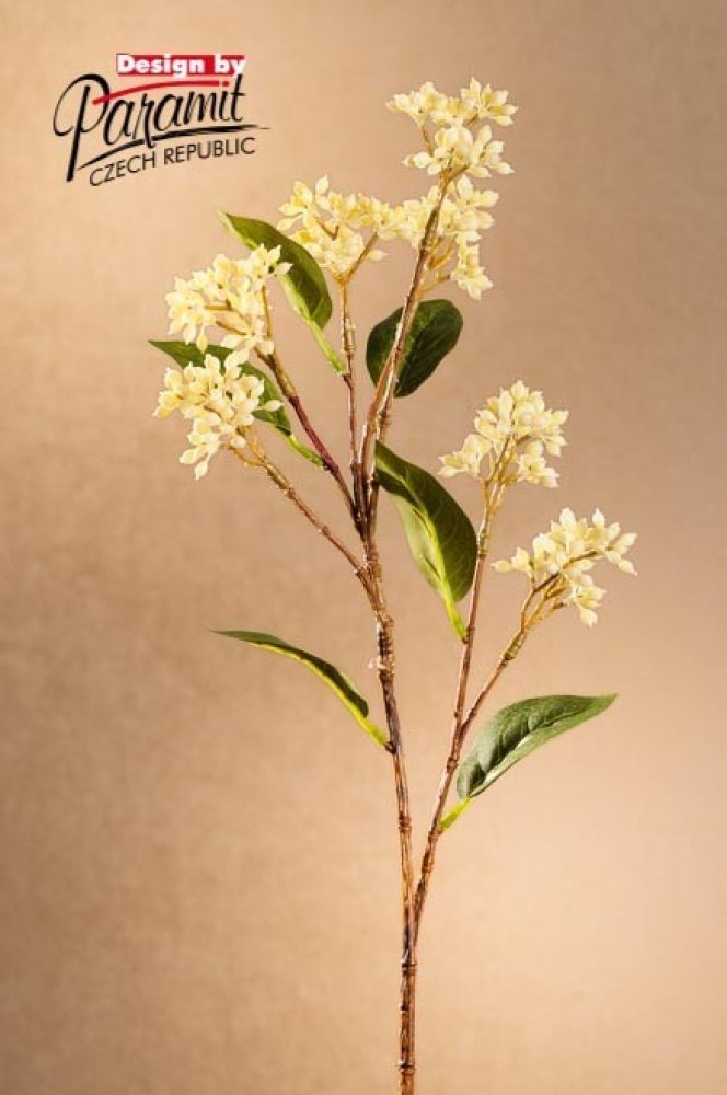 Větvička s bílými bobulkami. Větvička je hnědé barvy, dlouhá je 63 cm a je na ní šest listů. Větvička je hustě poseta bílými květy je formě bobulek. Dáváme přednost květinám, které můžete vidět ve volné přírodě, které rostou na loukách, na zahradách, u lesa, které vytvářejí celé keříky, jako je například bez nebo tato keříková rostlina. Držíme se heslem, že to, co je přirozené, je hezké. Příroda j...