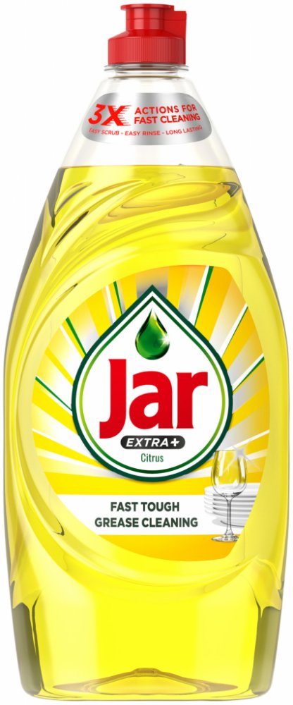 Tekutý prostředek na mytí nádobí Jar Extra+ Citrus vám pomůže dostat se rychleji z kuchyně tím, že myje rychleji a snadněji. Každá kapka Jaru rychle proniká do odolné mastnoty na nádobí, rozpouští ji a zanechává dokonalé výsledky i v případě těch nejodolnějších nečistot.