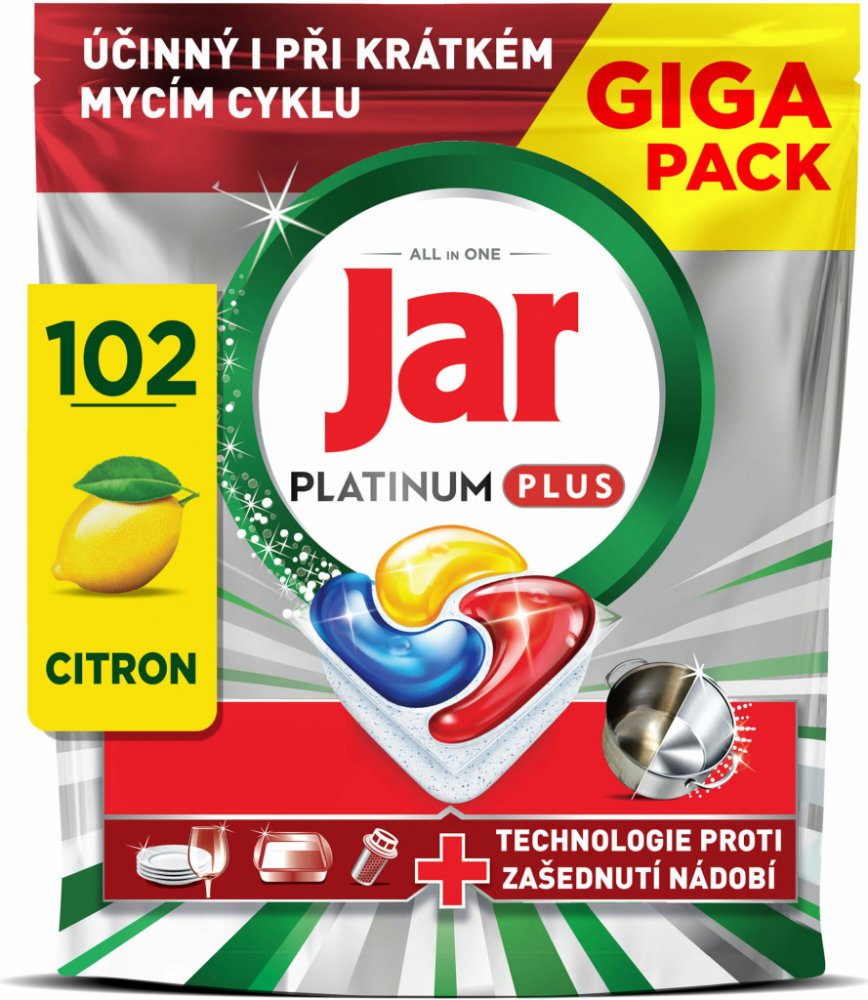 Tablety Jar Platinum Plus All In One do automatické myčky nádobí zanechávají nádobí čisté jako nové a mají nejlepší čisticí účinky Jaru na odolné zbytky jídla. Pomáhají dokonce odstraňovat zašedlost vznikající časem a obnovují původní lesk nádobí. Jar Platinum Plus poskytuje vynikající čistotu a odstraňuje odolné skvrny od jídla i v podmínkách krátkého cyklu. Pokud tedy máte málo času, nic se nedě...