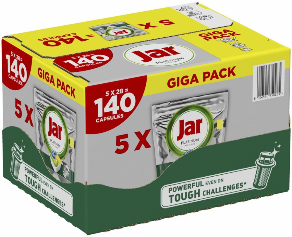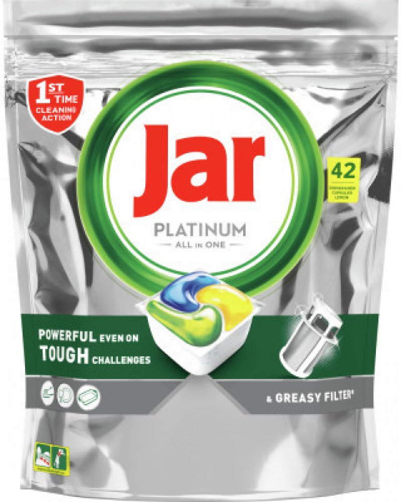 Kapsle Jar Platinum Plus zanechávají nádobí čisté jako nové, zaručují nejlepší čisticí účinky od Jaru, a dokonce pomáhají odstraňovat zašedlost vznikající časem a obnovují původní lesk nádobí. Vysoce rozpustný obal se rychle rozpouští a funguje dobře i při krátkých cyklech.