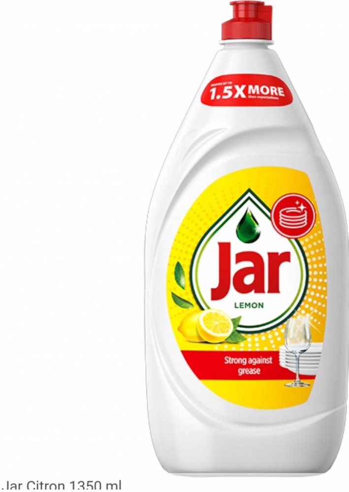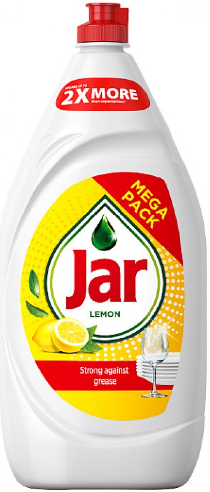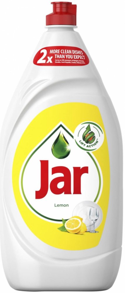 Každá kapka Jaru Lemon má extra dlouho trvající čisticí účinky, které od svého prostředku na mytí nádobí očekáváte. Jeho koncentrované složení si dokáže okamžitě poradit s mastnotou a vaše nádobí bude zářivě čisté. Je účinný u 100 % různých typů mastnoty z jídla. Tento základní tekutý prostředek na mytí nádobí Jar je tak koncentrovaný, že vám ke snadnému umývání nádobí bude stačit jen kapka: žádné...