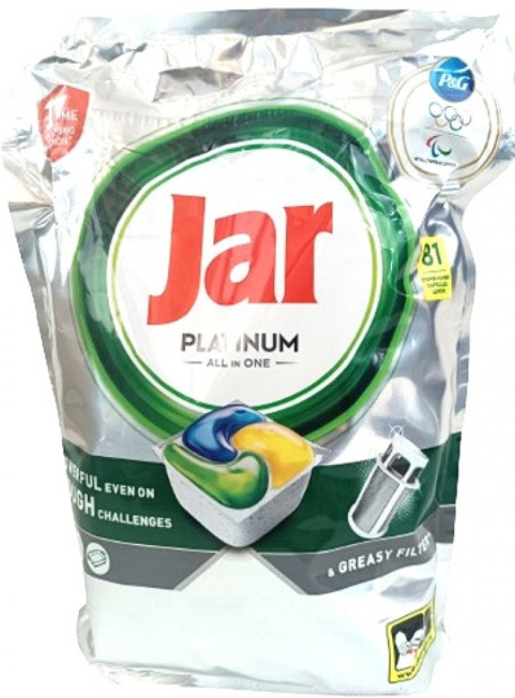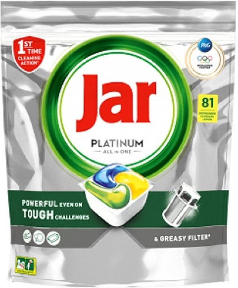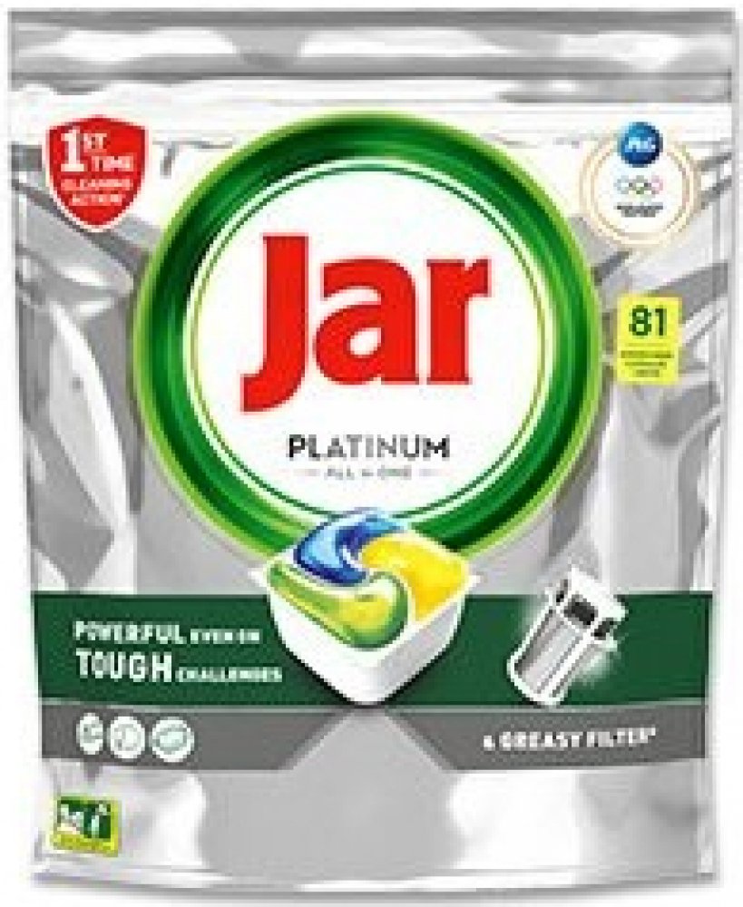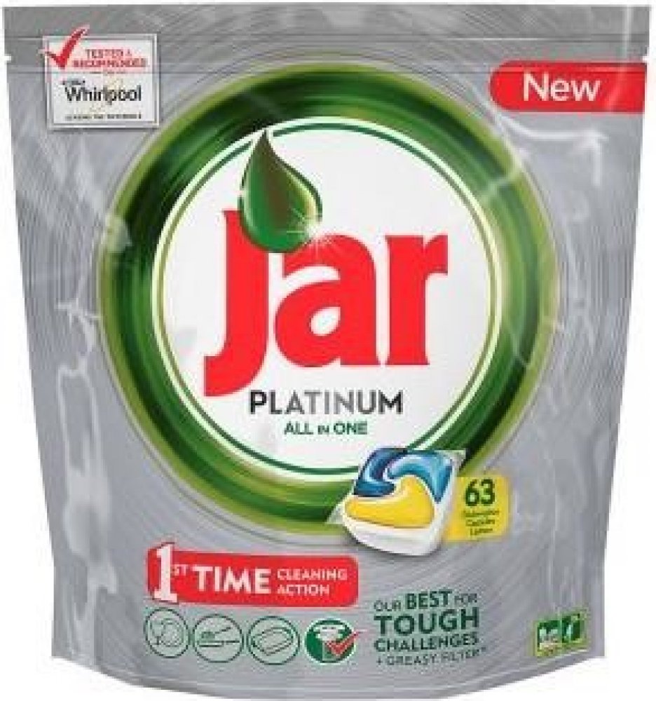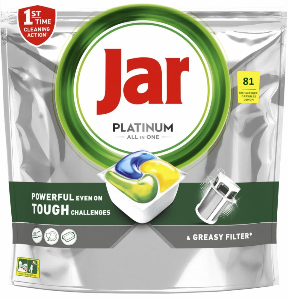 Kapsle JAR Platinum All in One Lemon jsou navrženy pro dokonalé odstranění mastnoty a nečistot z nádobí i pro péči o vaši myčku. Díky pokročilému složení čistí nejen nádobí, ale také odstraňují mastnotu z filtru, odpadu a mycích ramen. Obsahují sůl, prostředek na oplachování a ochranné složky pro sklo a stříbro, čímž zajišťují jejich dlouhou životnost a zářivý vzhled. Kapsle se rychle rozpouští, účinkují i při nižších teplotách a zachovávají uvnitř myčky svěží vůni.