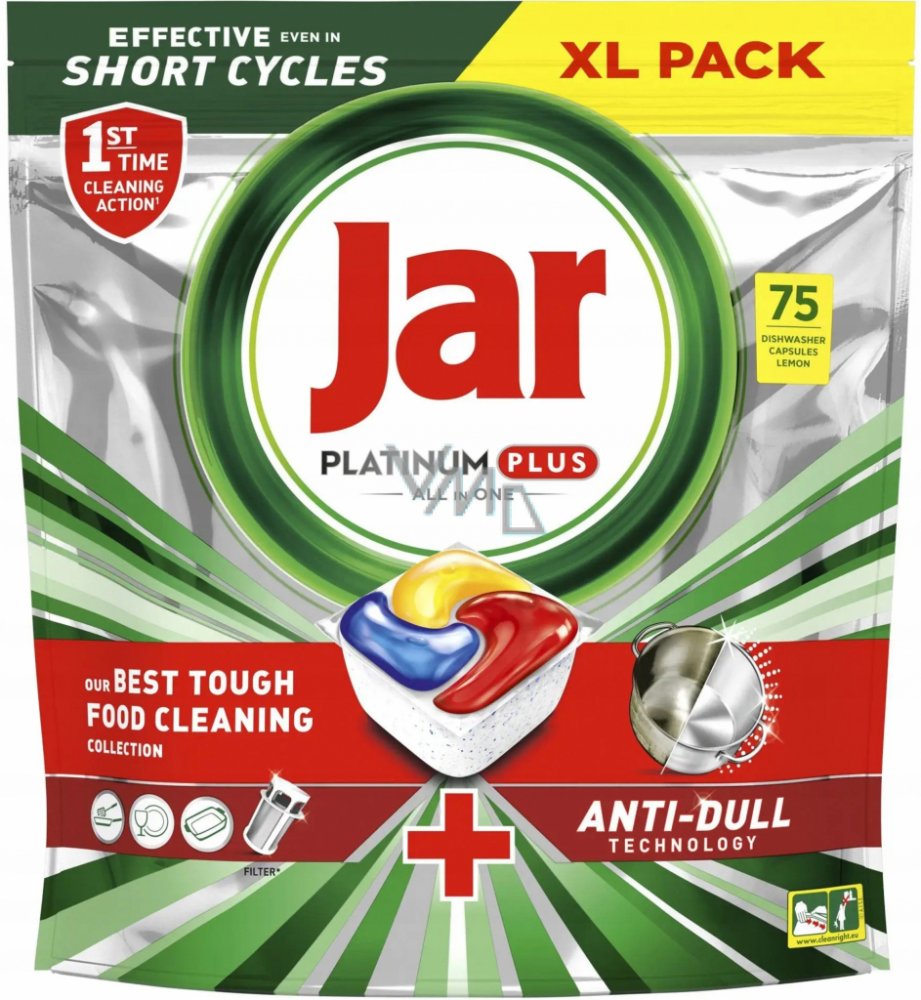 Kapsle Jar Platinum Plus Vše v jednom do automatické myčky nádobí zanechávají nádobí čisté jako nové, zaručují nejlepší čisticí účinky od Jaru a dokonce pomáhají odstraňovat zašedlost vznikající časem a obnovují původní lesk nádobí. Kapsle Jar Platinum Plus mají zabudovaný systém předmývání, takže nádobí nemusíte předmývat sami. S kapslemi Jar Platinum Plus nebudete muset nádobí předmývat, ušetřít...