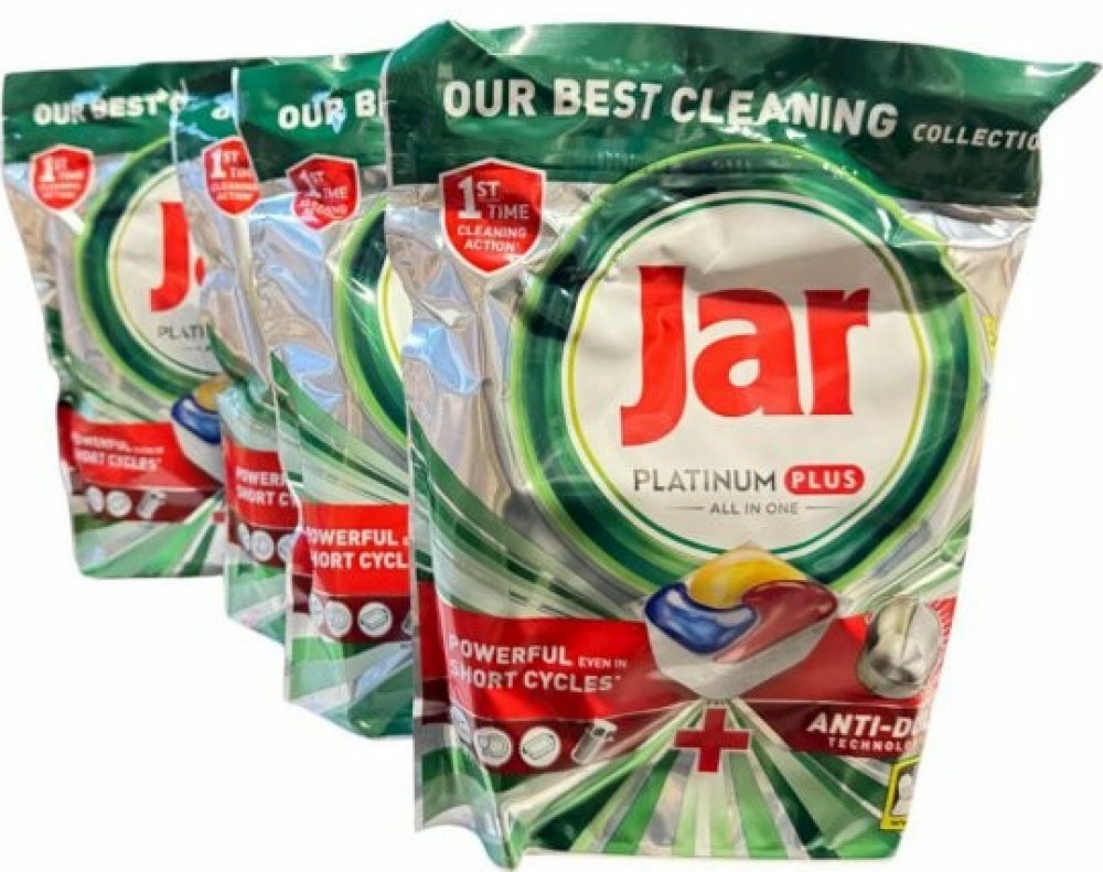 Nejlepší odstraňování odolných zbytků jídla od Jaru: Vaše nádobí bude zářivě čisté jako nové.Odstraňují zašedlost: Obnovují původní lesk nádobí, který se ztrácí postupem času.Účinné i v krátkých cyklech: Rychle se rozpouštějící obal kapsle zajišťuje skvělé výsledky i při krátkých mycích programech.Vše v jednom: Kapsle kombinují tekutou a práškovou formu prostředku na nádobí, obsahují prostředek na oplachování, funkci soli a ochranu skla a stříbra. Popis produktu: Jar Platinum Plus All in One přináší revoluci v mytí nádobí. Tyto kapsle kombinují tekutou a práškovou formu čisticího prostředku, což zajišťuje maximální účinnost při odstraňování i těch nejodolnějších zbytků jídla a mastnoty. Rychle se rozpouštějící obal umožňuje použití i v krátk