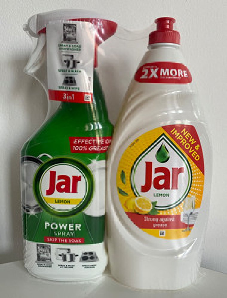 Použití: JAR Lemon: Naneste malé množství prostředku na houbičku nebo do teplé vody, jemně umyjte nádobí a poté opláchněte čistou vodou. JAR Power Spray: Nastříkejte přímo na mastný nebo znečištěný povrch, nechte krátce působit a poté opláchněte vodou nebo otřete vlhkým hadříkem.