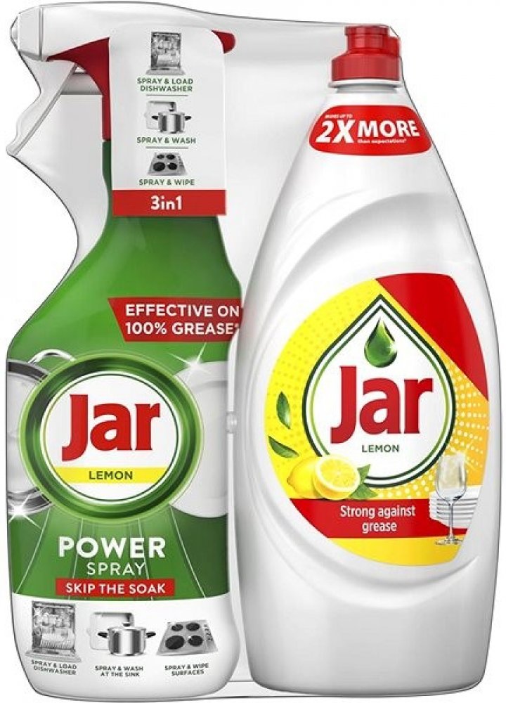 Sada obsahuje víceúčelový čisticí sprej JAR Power Spray 3v1 Lemon a klasický tekutý prostředek na mytí nádobí JAR Lemon. JAR Lemon účinně odstraňuje mastnotu a nečistoty z nádobí díky koncentrovanému složení – stačí jen malé množství a nádobí bude zářivě čisté. JAR Power Spray je ideální pro předmytí nádobí před vložením do myčky, při ručním mytí i pro čištění kuchyňských povrchů. Společně tvoří praktickou kombinaci pro snadný a efektivní úklid kuchyně.