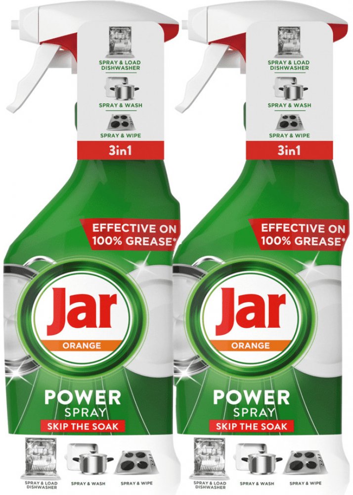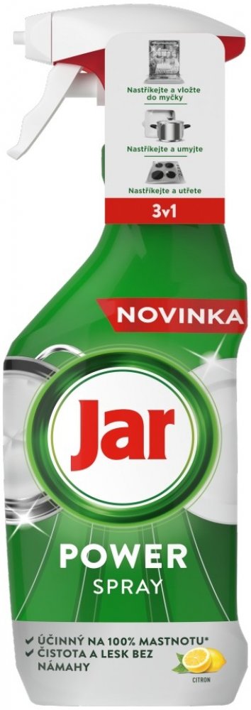 Jar Power Spray, jedno řešení na mastnotu před mytím nádobí v myčce, před ručním mytím nádobí a dokonce na kuchyňské povrchy.