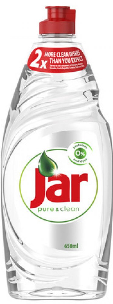 Tekutý prostředek na mytí nádobí Jar Pure & Clean má čisticíúčinky Jaru, ale neobsahuje žádné parfémy anibarviva. Bezpečnostní varování: Způsobuje vážnépodráždění očí. Škodlivý pro vodní organismy, s dlouhodobýmiúčinky. Uchovávejte mimo dosah dětí. PŘI ZASAŽENÍ OČÍ: Několik minutopatrně vyplachujte vodou. Vyjměte kontaktní čočky, jsou-li nasazeny apokud je lze vyjmout snadno. Pokračujte ve vyplach...