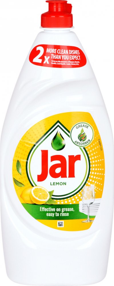 Jar prostředek na mytí nádobí s vůní citronu je spolehlivým pomocníkem při mytí nádobí. Účinné složení snadno odstraní jakoukoliv mastnotu, ať už se jedná o talíře, skleničky, hrnce nebo pánve. S Jarem navíc ušetříte - jedna kapka umyje značné množství mastného nádobí.